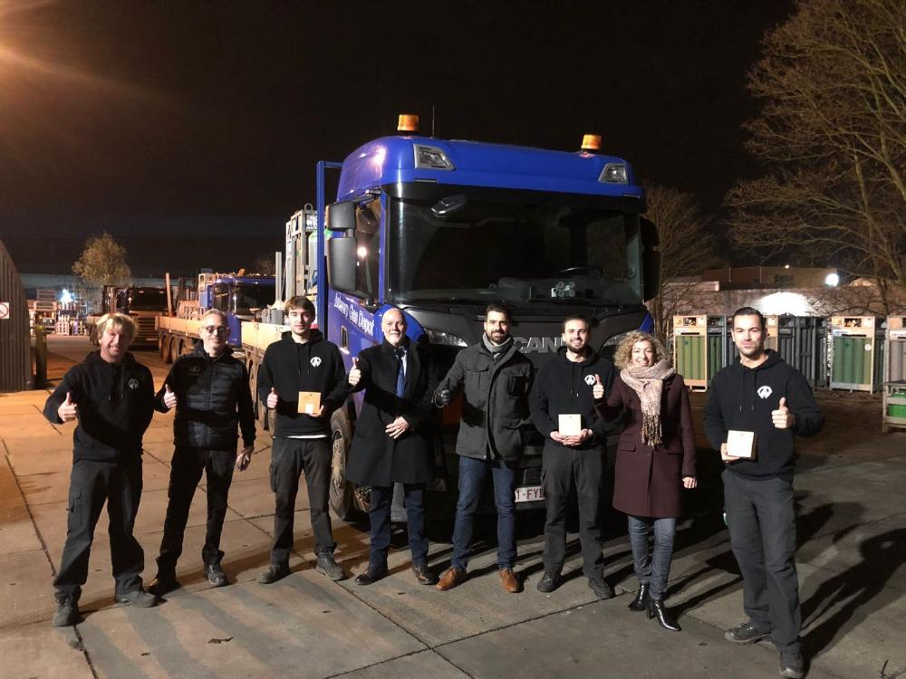 Onze hele directie, sales afdeling en logistieke afdeling zetten daarom de wekkers in alle vroegte (!!) om onze bulk- en depotchauffeurs over heel Belgiรซ en Nederland te verrassen voor aanvang van hun eerste rit met een lekkere snoepdoos. ๐